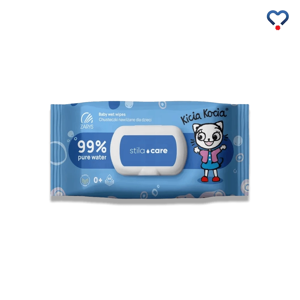 Chusteczki nawilżane Stila Care Baby przeznaczone do oczyszczania i pielęgnacji wrażliwej skóry noworodków, niemowląt i dzieci. Skład oparty w 99% na wodzie sprawia, że są wyjątkowo delikatne i bezpieczne nawet dla skóry od pierwszego dnia życia. Chusteczki nie zawierają substancji zapachowych, co minimalizuje ryzyko podrażnień u dzieci z wrażliwą skórą. Opakowanie zdobi postać Kici Koci - bohaterki jednej z najpopularniejszych polskich serii książek dla dzieci.