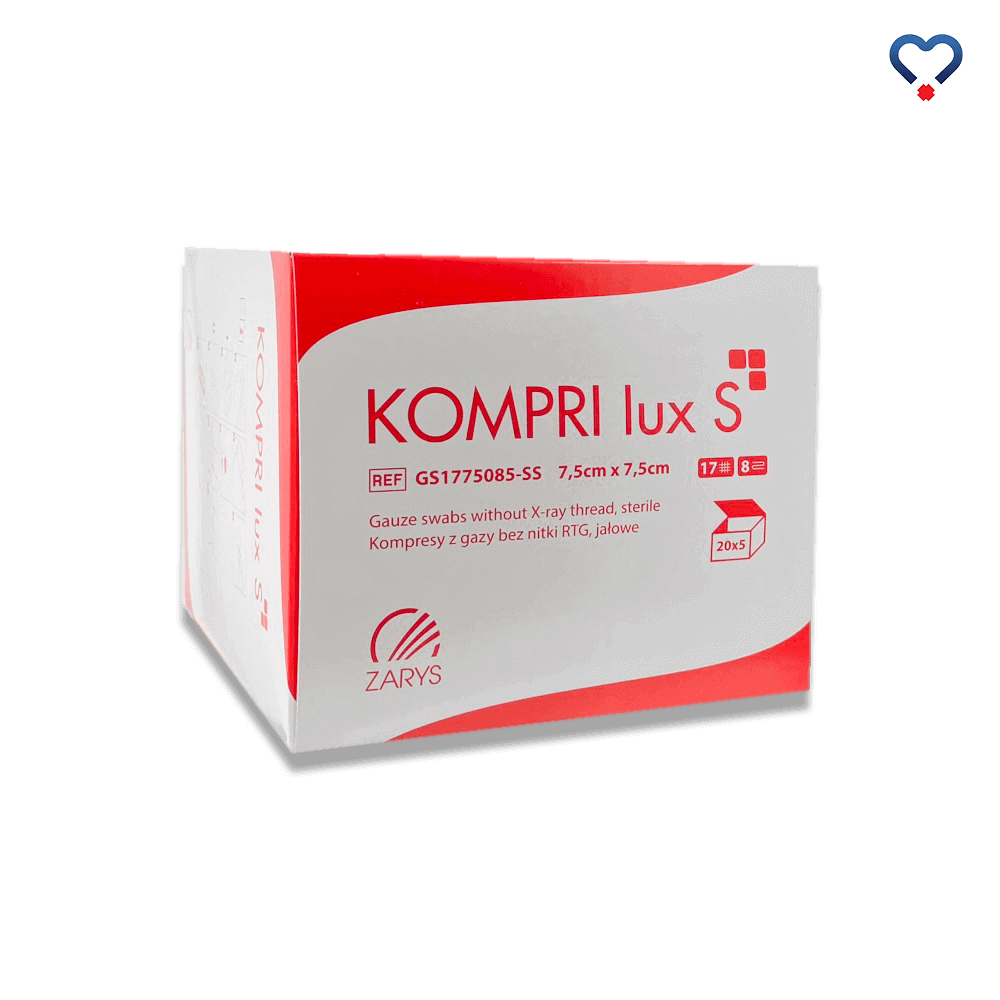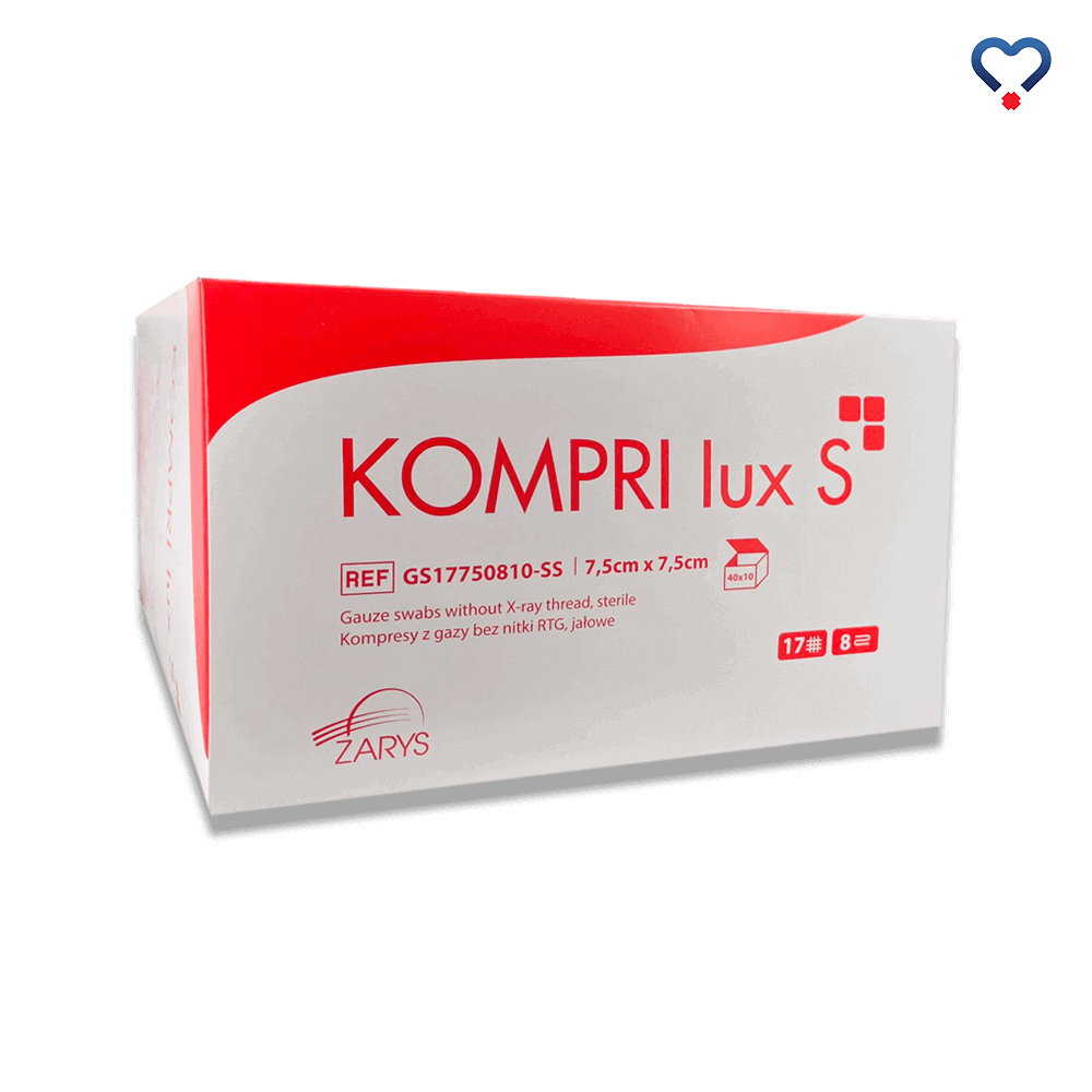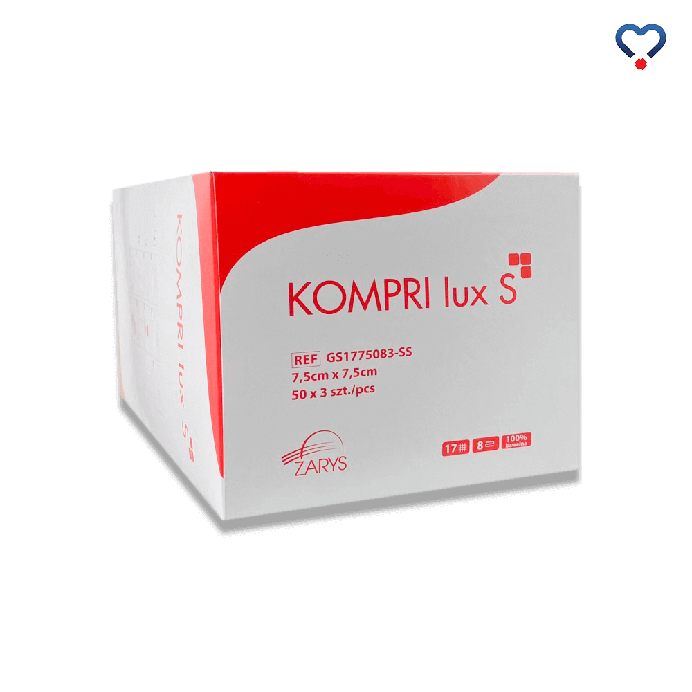 KOMPRI lux S, Kompresy gazowe, jałowe, 17-nitkowe, 8-warstwowe, 7,5x7,5cm