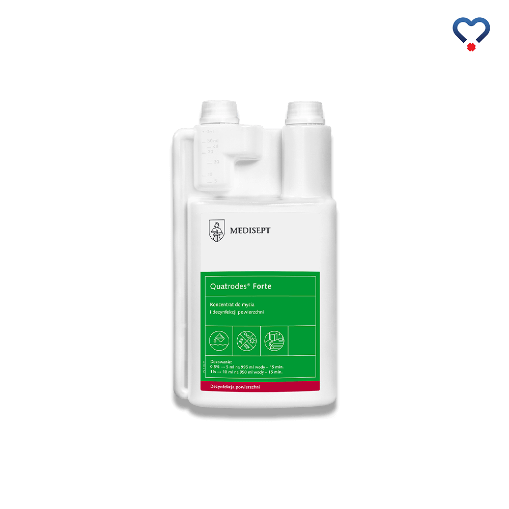 Quatrodes® Forte to płynny koncentrat do jednoczesnego mycia i dezynfekcji powierzchni w obszarze medycznym (unity, łóżka i fotele zabiegowe, stoły operacyjne, aparatura medyczna podłogi, ściany), w gastronomii, domach opieki, sanatoriach, siłowniach, salonach fitness i SPA, salonach fryzjerskich, kosmetycznych, solariach (do dezynfekcji łóżek do opalania), gabinetach masażu i tatuażu, przedszkolach, szkołach oraz do dezynfekcji powierzchni mających kontakt z żywnością. Produkt posiada działanie wirusobójcze, bakteriobójcze, prątkobójcze i drożdżakobójcze. Preparat można stosować na wszelkie powierzchnie podłogowe i ponad podłogowe (drzwi, blaty, szafki, stoły) oraz do mycia i dezynfekcji akcesoriów fryzjerskich.