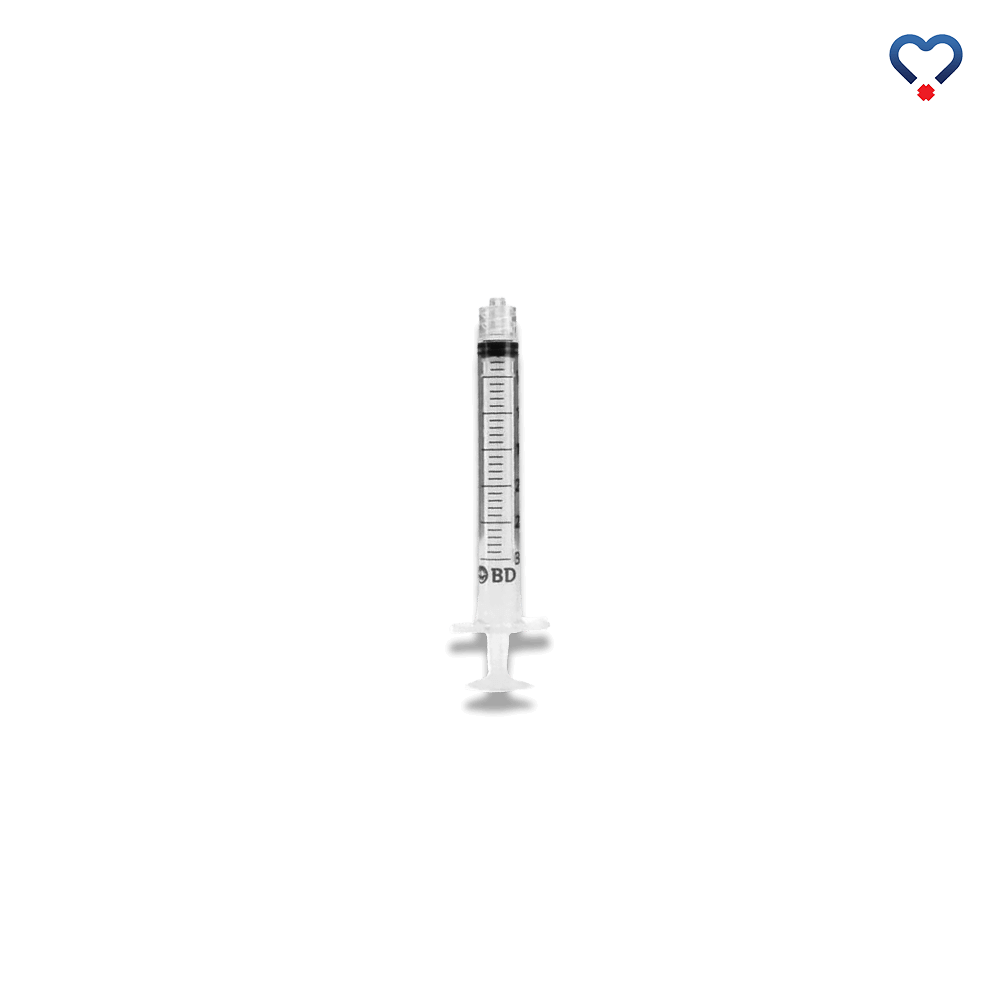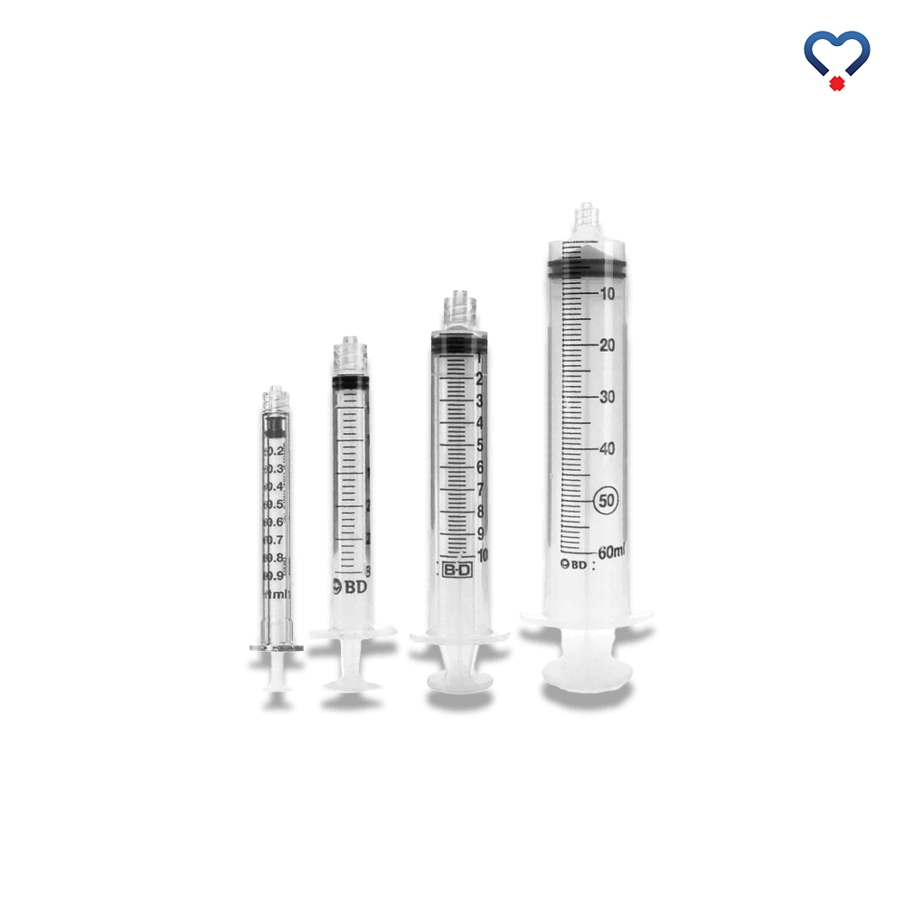 Trzyczęściowe strzykawki Luer-Lock BD. Dostępne w rozmiarach 1 ml, 3 ml, 10 ml, 50/60 ml.