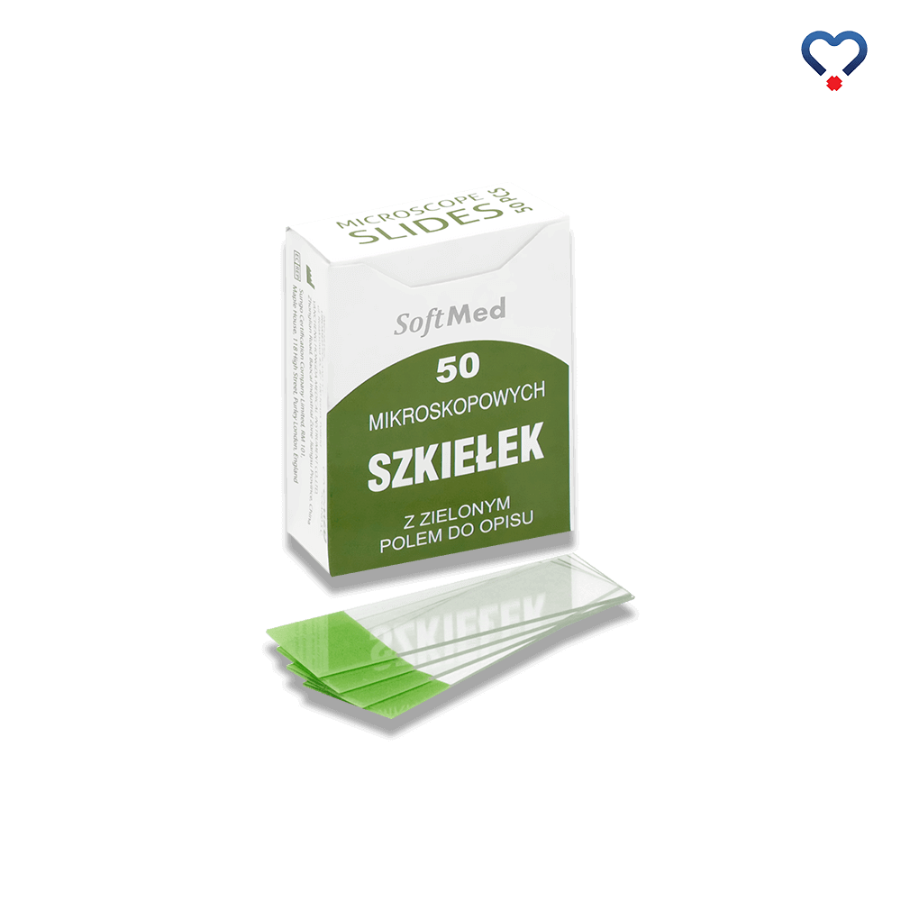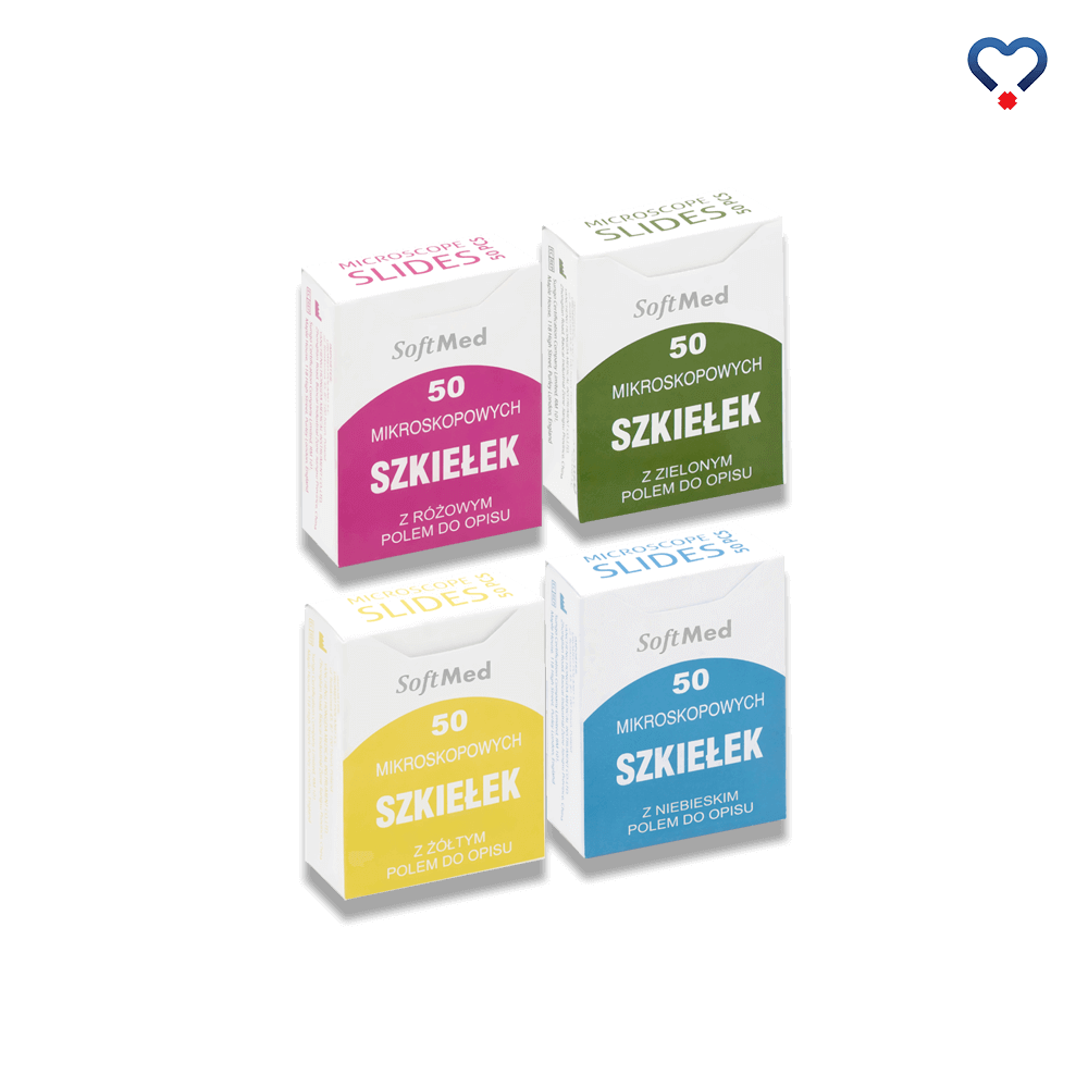 Szkiełka do badań cytologicznych z kolorowym polem do opisu.